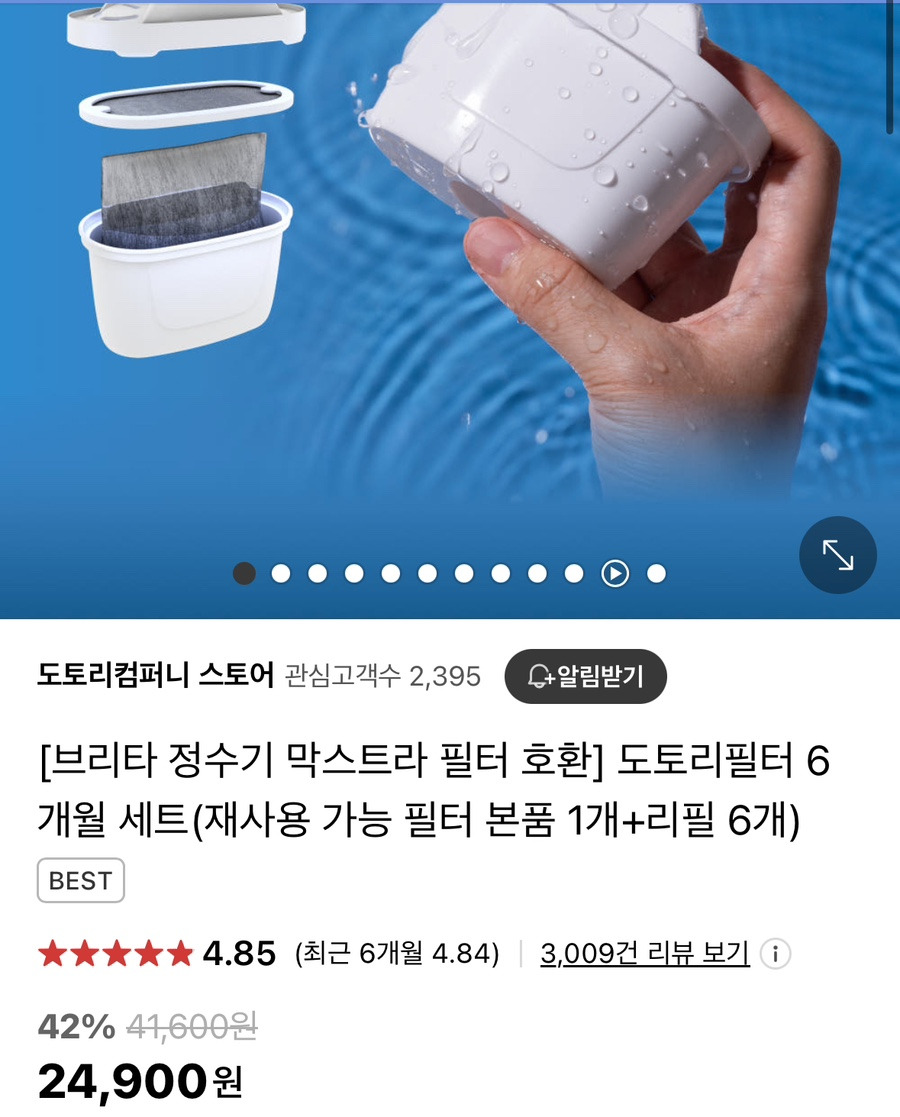 기존에 사용하던 브리타 정품 필터보다 훨씬